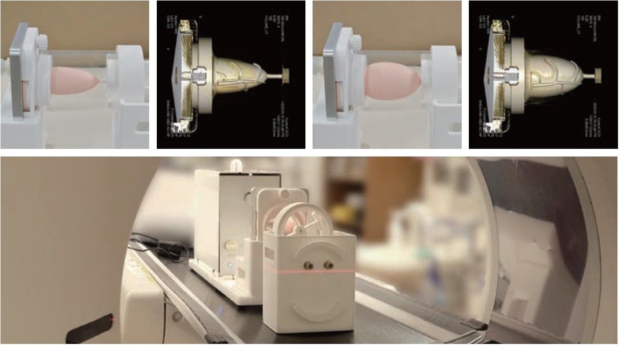The phantom generates pulses that are synchronized with the cardiac movement for ECG gating. Controllable parameters; pulse rate (30-120 bpm) and ejection volume (0-100%). Three kinds of arrhythmic modes. Operation with the tablet PC is simple and easy.